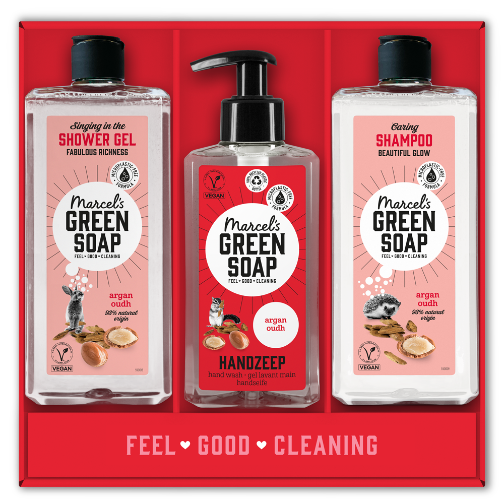 Marcel's Green Soap Gift Set: a Feel Good gift that is responsible and surprising! In the delicious scent of Argan & Oudh. Who will you make feel good?