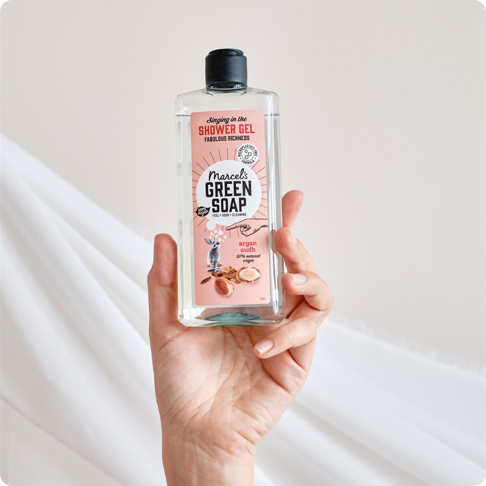 The Shower Gel from Marcel's Green Soap is made with care for the planet. The bottle is made of 100% recycled plastic and refillable with our refill bags. The formula is microplastic-free (ECHA definition) and contains at least 93,45% natural ingredients (ISO16128).