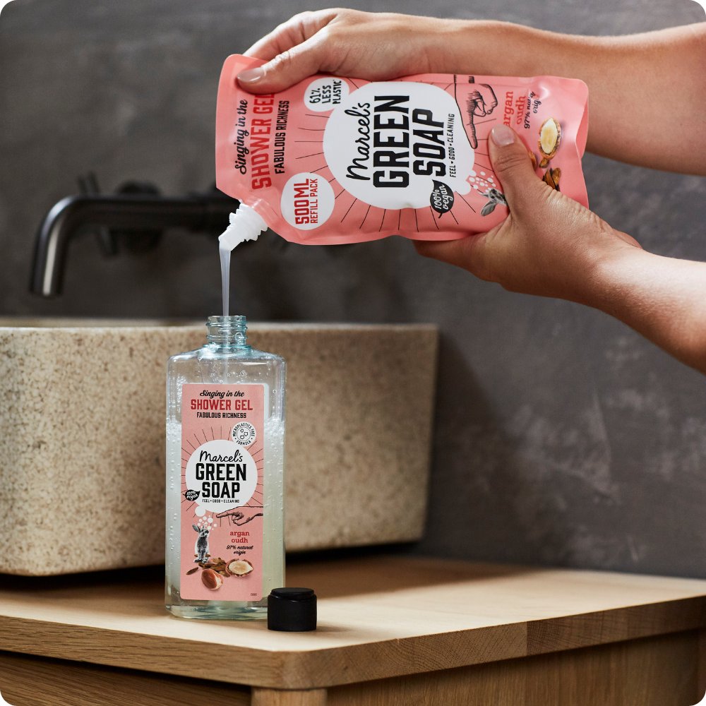 Start your refill adventure with Marcel's Green Soap Shower Gel Refill Bundle Argan & Oudh. This bundle contains an infinitely refillable shower gel 300ML bottle and two 500ML Refills. Start refilling now!