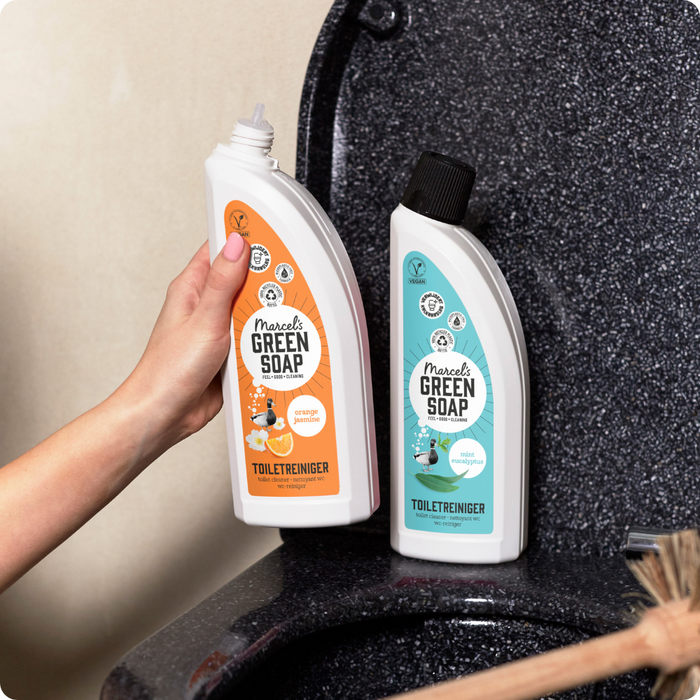 Marcel's Green Soap Toilet Cleaner for a clean and fresh toilet. With the delightful scent of mint and eucalyptus, it makes cleaning a refreshing and relaxing chore.