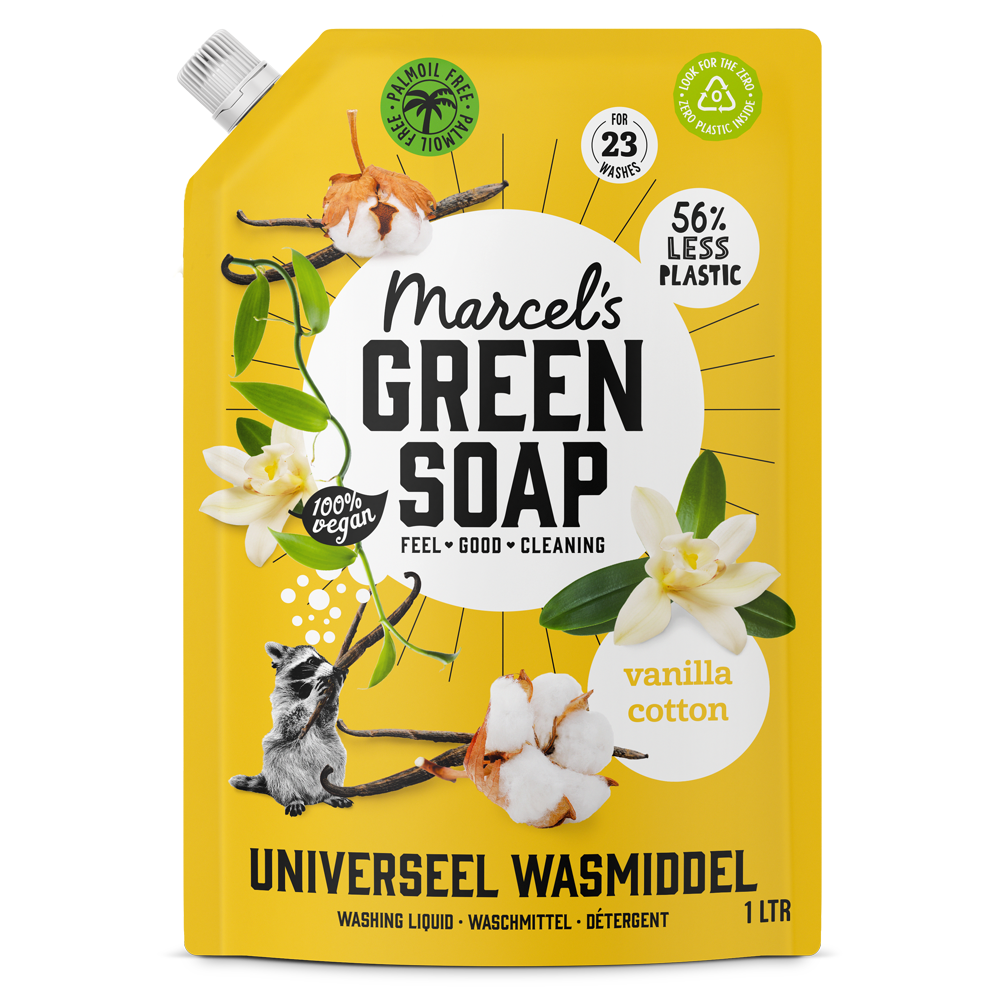 The Washing Liquid from Marcel's Green Soap is made with care for the planet. The bottle is made of 100% recycled plastic and refillable with our refill bags. The formula is microplastic-free (ECHA definition).