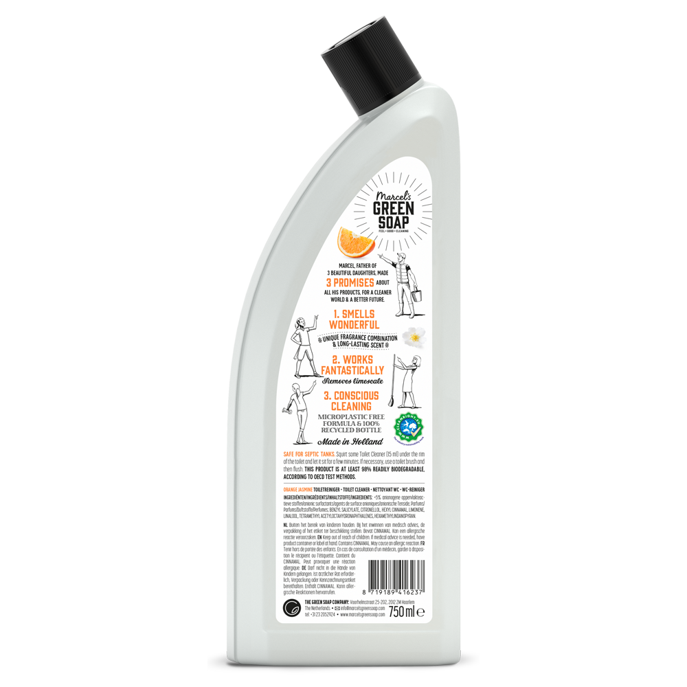 Marcel’s Green Soap Toiletreiniger voor een schoon en fris toilet. Met de heerlijke geur van Sinaasappel & Jasmijn. Zo maak je van schoonmaken een verfrissende en ontspannen klus.