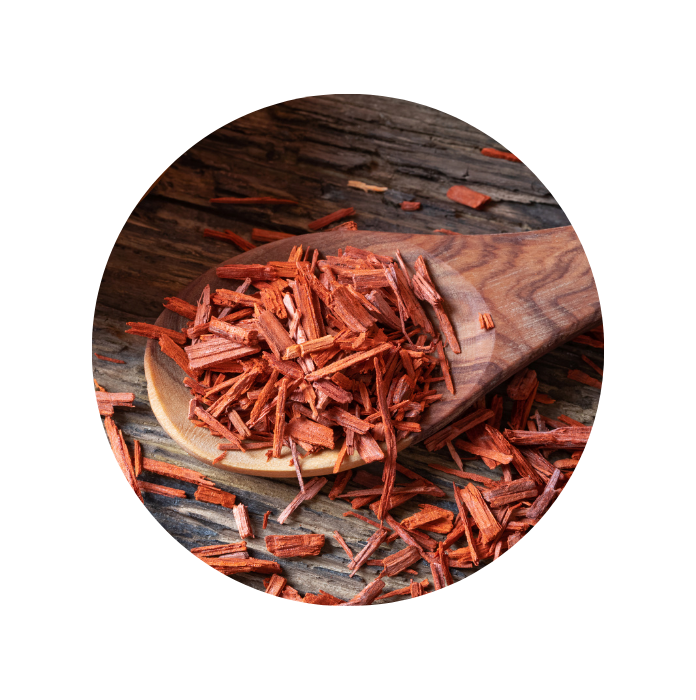 Sandelhout is een veelgebruikt ingrediënt in parfums. Als je aan sandelhout ruikt, ruik je aardse, warme en houtachtige tonen. Doe daar het oriëntaalse, zoet-kruidige en frisse aroma van kardemom bij, en je hebt de perfecte geurcombinatie te pakken.